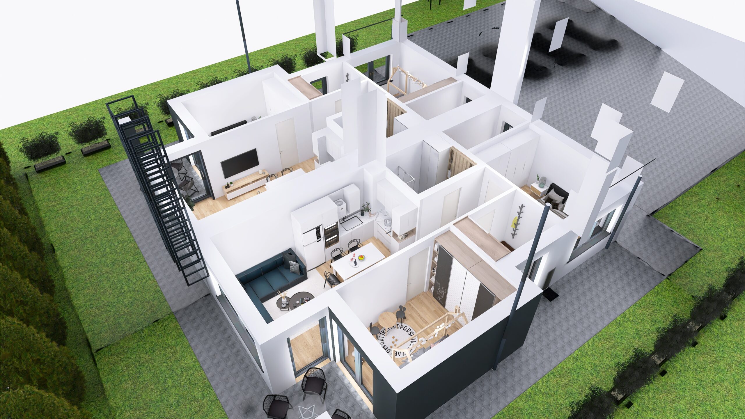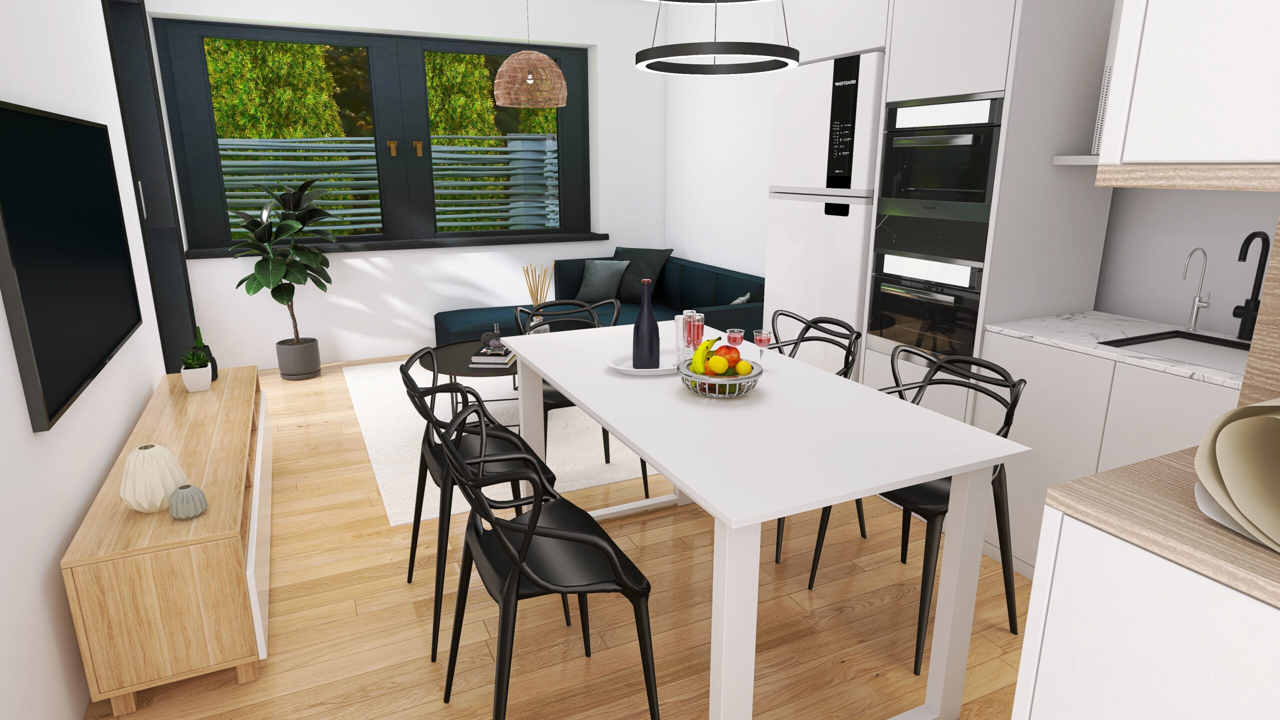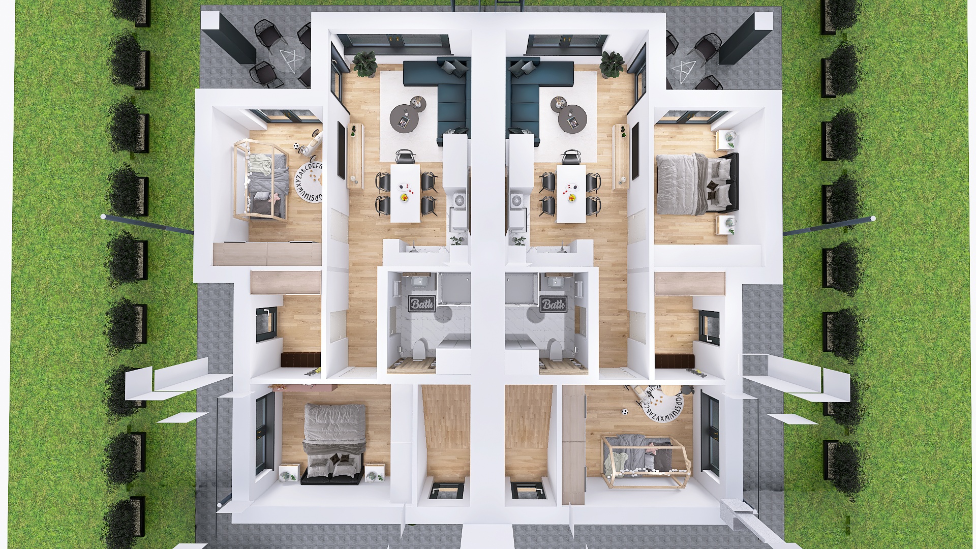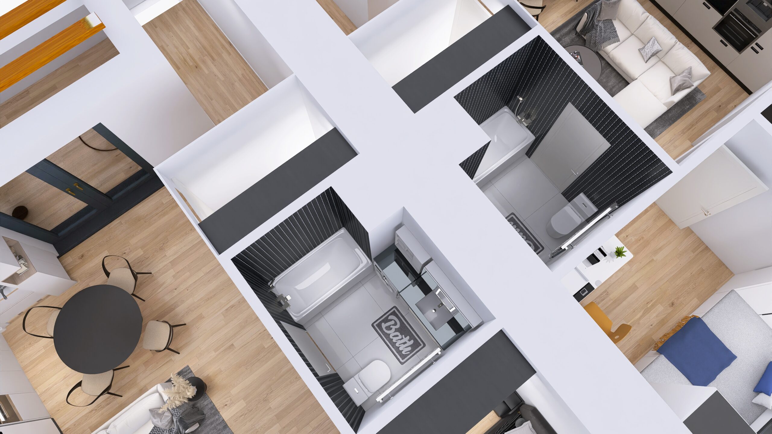 Każde z czterech mieszkań zostało zaprojektowane z uwzględnieniem optymalnego wykorzystania przestrzeni. Duże okna zapewniają doskonałe doświetlenie wnętrz oraz przyjemny widok na okolicę. Nowoczesne rozwiązania architektoniczne gwarantują komfort akustyczny i prywatność mieszkańców.